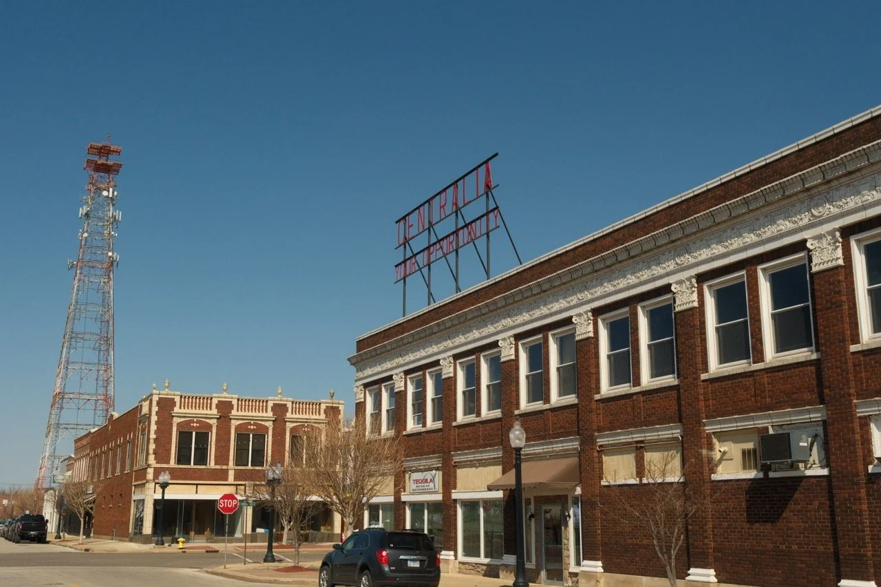 Today, Historic Downtown Centralia still tells the story of those early years. Buildings dating back to the late 1800s to early 1900s remain standing, each carrying pieces of the city’s past. Visitors can spot engravings atop the present-day City Hall that reads, “Old National Bank.” The Regions Bank building retains the original First National Bank logo, and the Hoffman Heart building has a faded mural on top that reads, “Hoffman Clothing”.