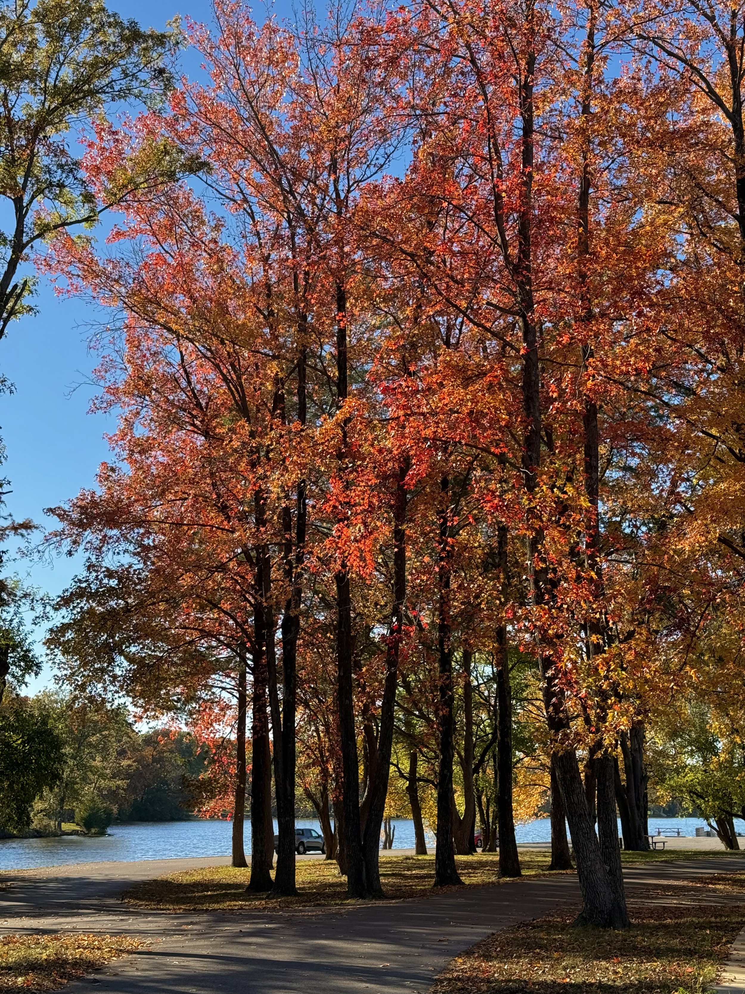 It has paved roads to park and enjoy lunch by the water or to go for a walk or run.